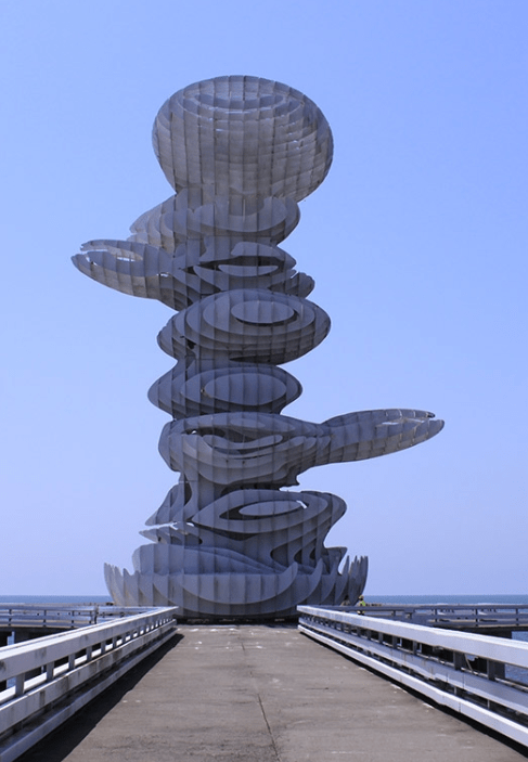 They only look like absurd and hateful vanities. They in fact have a real use. On a very practical level, these sculptures absorb, embody and appease the non-human presences who used to call these coastal domains their own. The shared style, all those looping vortical curves, fractal bubbles and algorithmically precise yet organic-seeming waves, is a deliberate appeal to non-human ergonomics that has, presumably, arrived at this aesthetic point through centuries of iterative development of architectural practice.